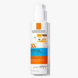 Losjon LRP Anthelios wet skin SPF 50+ se s svežo in lahko gelno teksturo zelo preprosto nanaša na mokro ali suho kožo. Namenjen je tako zaščiti telesa, kot tudi obraza in sicer za občutljivo kožo in kožo, ki je nagnjena k intoleranci na sonce, splošno znani kot alergija na sonce. Preprečuje nastanek pigmentnih madežev, ki jih povzroča sonce (nosečniške pege, fotosenzibilizacija …). Izdelek je vodoodporen, nelepljiv, nemasten in pri nanosu na mokro kožo ne pušča belih madežev. Inovacija “wet skin” na koži ustvari zaščitni hidrofobni sloj, ki odbija vodo. Zelo visoka zaščita se ohrani tudi pri nanosu na mokro kožo. Patentiran sistem filtrov Mexoplex® omogoča optimalno zaščito SPF 50 +, okrepljeno proti škodljivemu delovanju UVA-žarkov. Gel je obogaten s termalno vodo La Roche-Posay, ki pomirja kožo in ima hkrati antioksidativno delovanje.