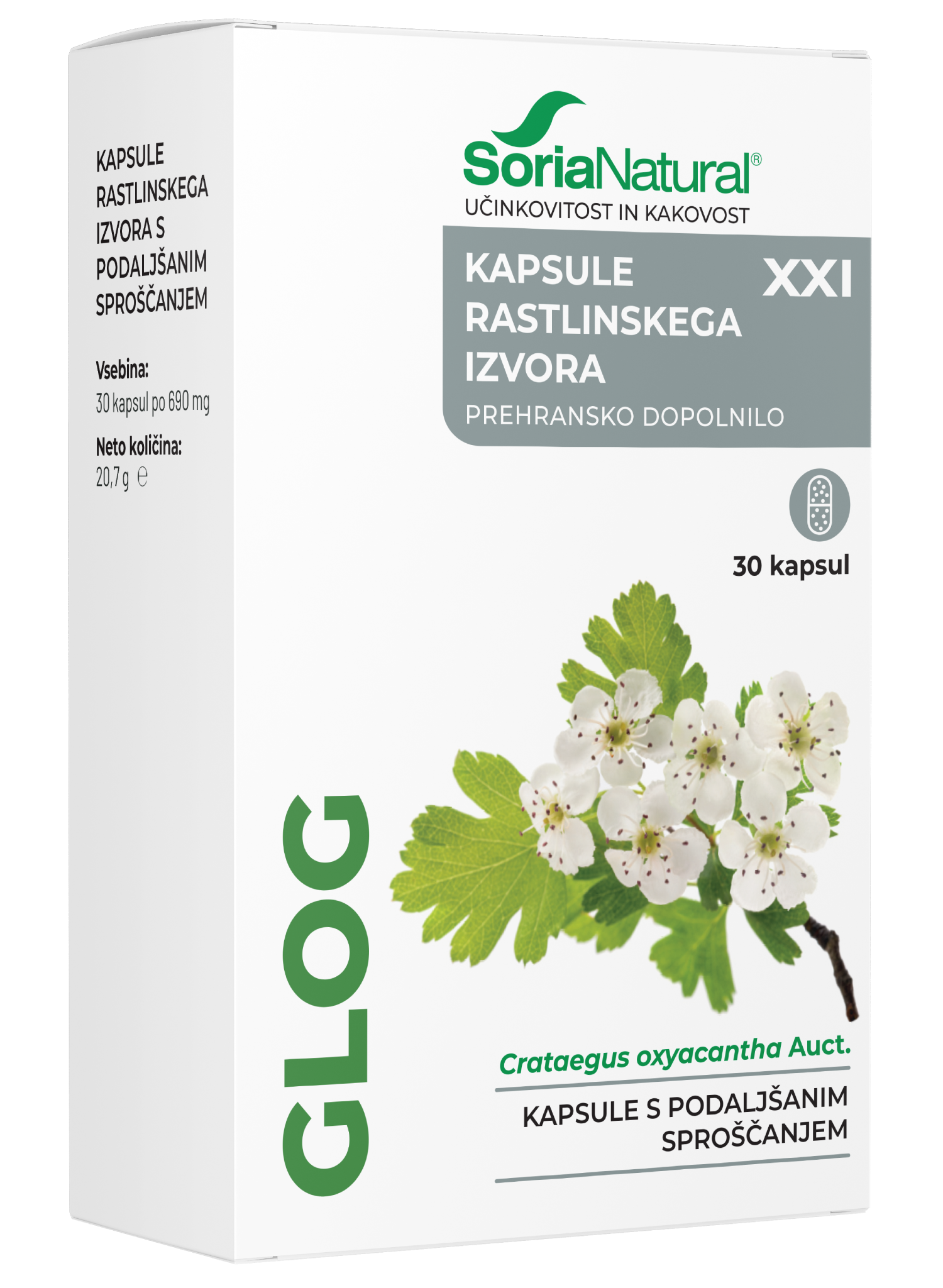 Glog XXI kapsule s podaljšanim sproščanjem vsebujejo glog, ki ima vlogo pri vzdrževanju delovanja srca in srčno-žilnega sistema. Ekstrakt gloga prispeva k povečanju pretoka kisika v krvi in izboljšanju perifernega krvnega obtoka.